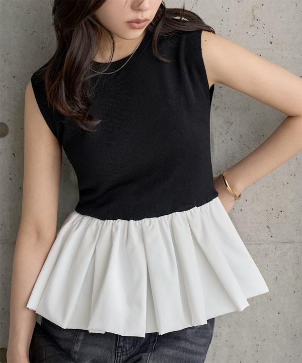 ペプラム切替ニットトップス [N1272]