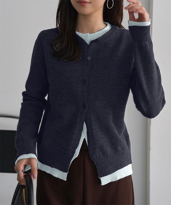 バイカラーフェイクレイヤードニットカーディガン [N1296]
