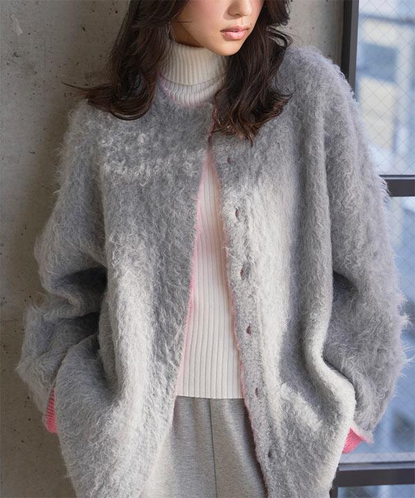 バイカラースリーブニットコーディガン [N1307]