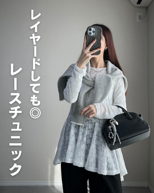 レースアシンメトリーヘムチュニック [C7805]