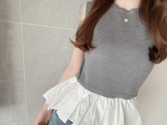 ペプラム切替ニットトップス [N1272]