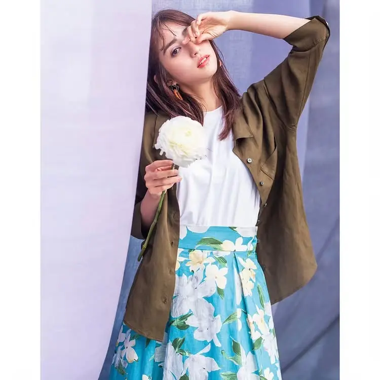 スカート: 【31 Sons de mode】 綿麻大花柄プリントスカート