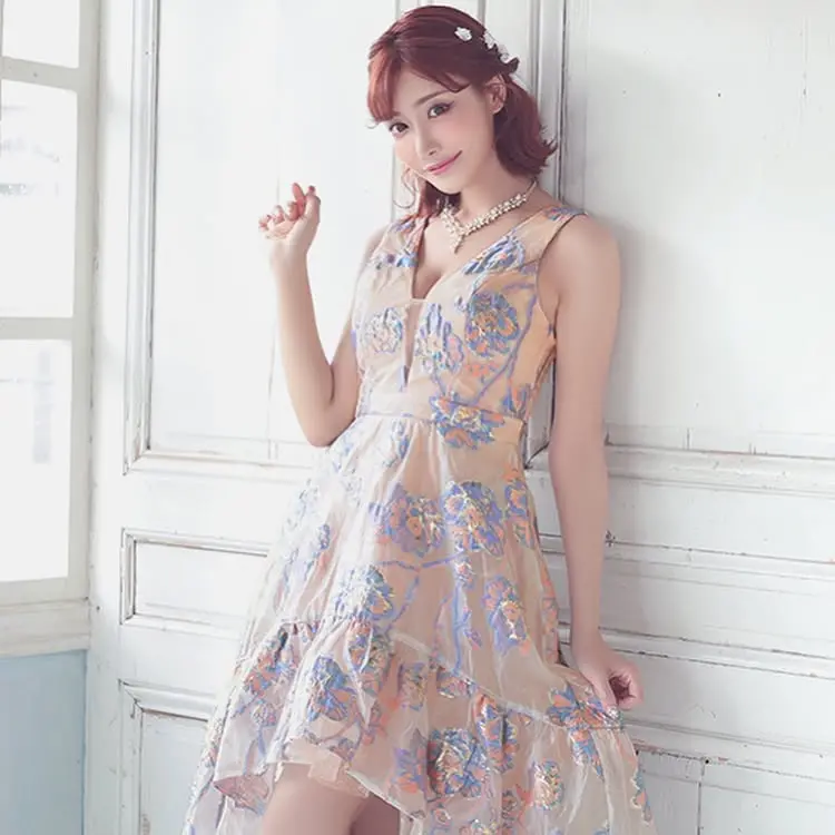 ミニドレス: 【TiKa】 花柄刺繍チュールミニドレス