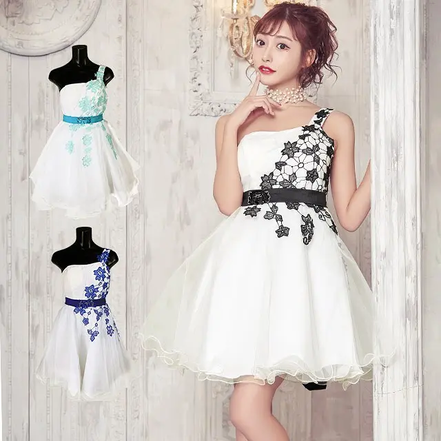 ドレス: 【TiKa】 花柄ワンショルダーフレアミニドレス
