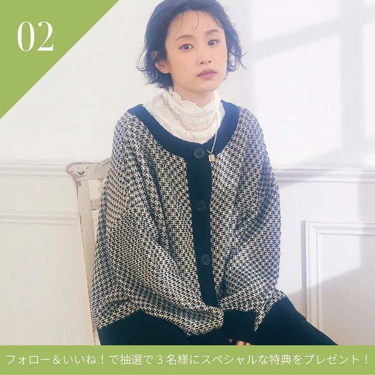 カーディガン: 【vis-à-vis】 リンクス柄前後2WAYニットカーディガン