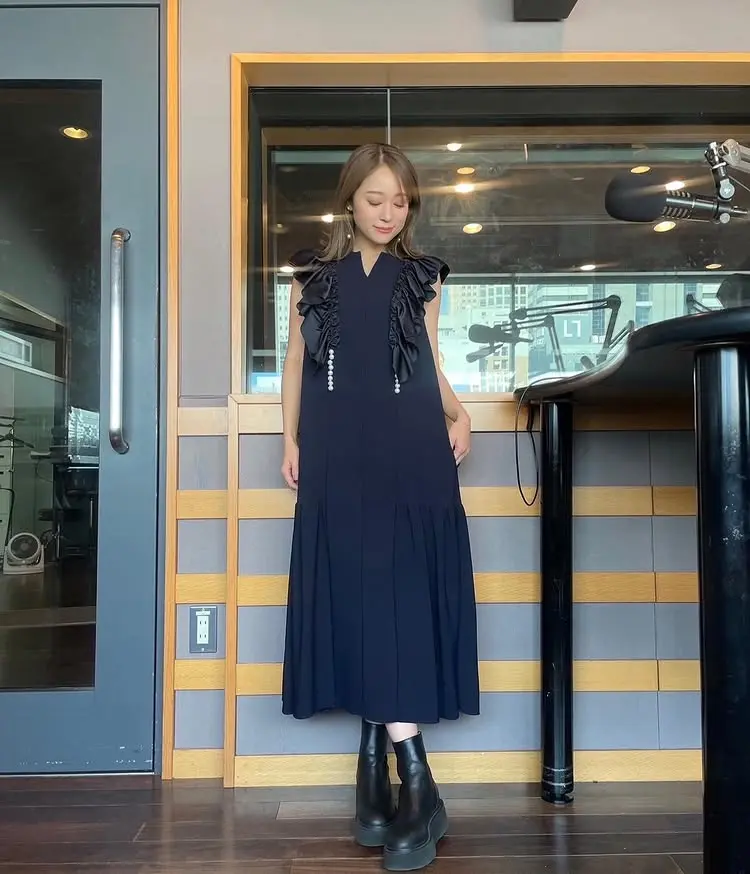 ドレス: 【Arobe】 Pearl Ruffle Dress