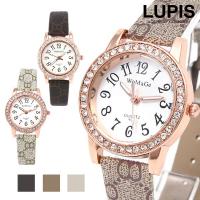 w171:(1)ゴールド&パヴェデザインレザーウォッチ・腕時計